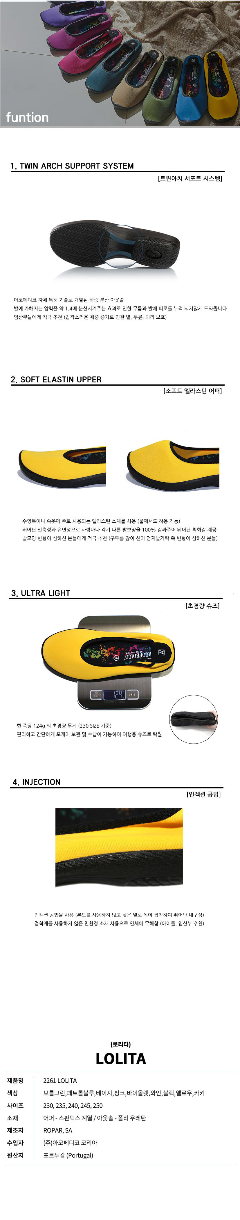 아코페디코 신발 특성상 신축성이 뛰어나 주문시에 사이즈에 딱맞게 주문해주시기 바랍니다. 예) 240~245 사이즈를 신으시는 분들은 240을 주문해주시기바랍니다.