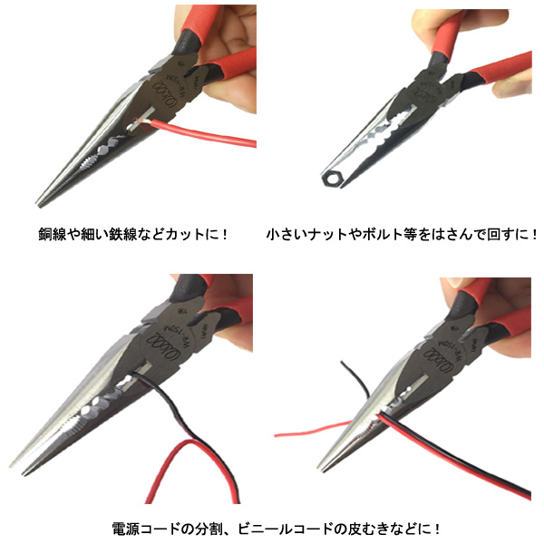 ●はさむ・つかむ・切るなどをこなし、電気器具の修理や日曜大工・ホビーまで、大変利用価値の高い万能工具