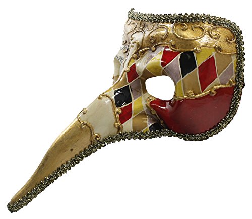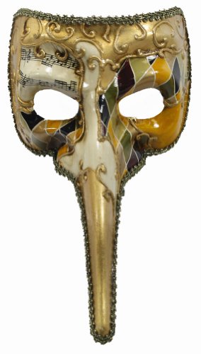 -. Brand : RedSkyTrader -. ClothingSize : One Size fits Most -. Department : mens -. Feature : Made of Paper Mache - Music Notes and Diamond Designs / Mask Is about 5" Tall and 7" Wide / Nose Is about 7" Long / Perfect for Any Masquerade Ball or Venetian Party / Fits Most Adults -. Label : RedSkyTrader -. Manufacturer : RedSkyTrader -. PackageQuantity : 1 -. ProductGroup : Apparel -. ProductTypeName : ADULT_COSTUME -. Publisher : RedSkyTrader -. Size : One Size fits Most -. Studio : RedSkyTrader -. Title : RedSkyTrader Mens Long Nose Antiqued Checkered Mask