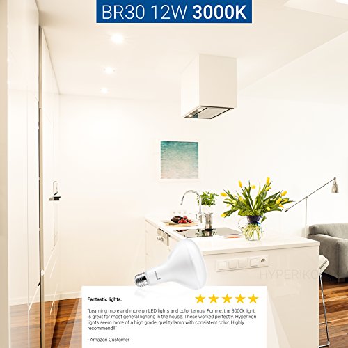 Hyperikon BR30 LED Bulb Dimmable, 12W (75W Equivalent), 3000K (Soft White Glow), Wide Flood Light Bulb, Medium Base (E26), UL & ENERGY STAR - Great for Kitchen, Outside, Bathroom (6 Pack)