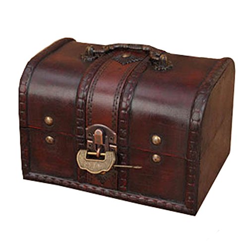 -. Title : Vintage Style Wooden Treasure Chest Box Case Storage Accessory with Lock