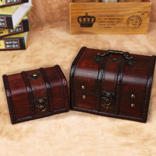 -. Feature : Material: Wood / Size: 16x12x11cm / 6.2"x4.7"x4.3" / Suitable for storing earrings, rings, keepsakes, diary, photos or other jewelry / Decorative trunk that is great for decoration / Package Content: 1 x Box