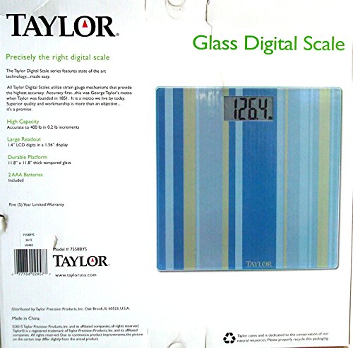 -. Title : Taylor Glass Digital Bath Scale Blue/Yellow Striped #7558OG