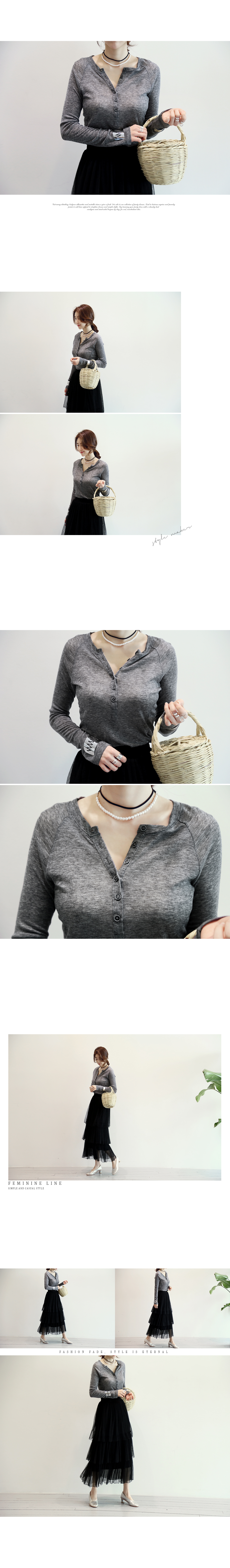 브이 네크라인에 버튼디테일로 글래머러스 하면서 갸름한 페이스라인 연출해주고요,