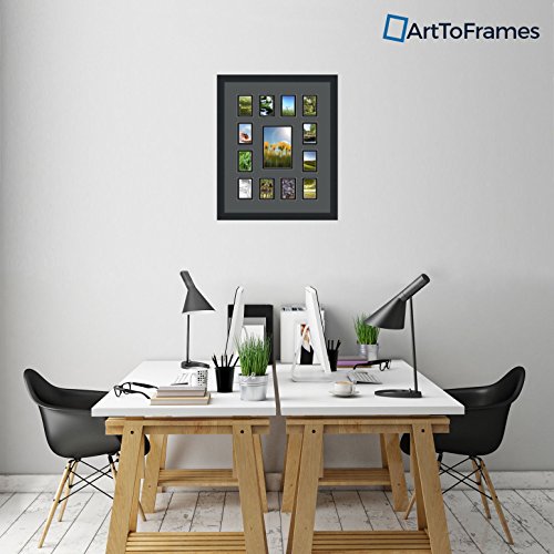 Art to Frames Double-Multimat-801-41/89-FRBW26079 Collage Photo Frame Double Mat with 1 - 5x7 and 12 - 2.5x3.5 Openings and Satin Black Frame