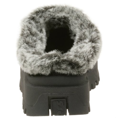 -. Feature : Slide-on clog featuring suede upper with embroidered logo and faux fur lining / EVA midsole for lightweight cushioning / Platform heel with lugged outsole
