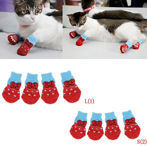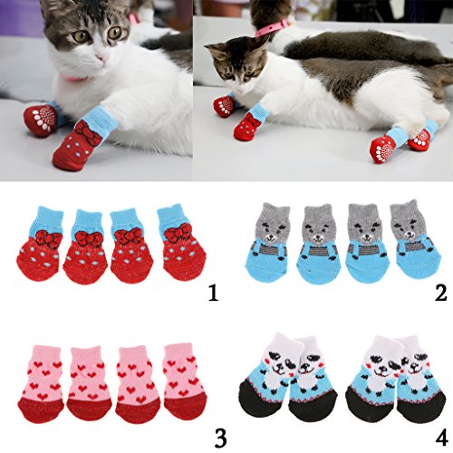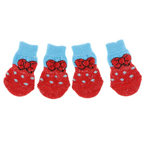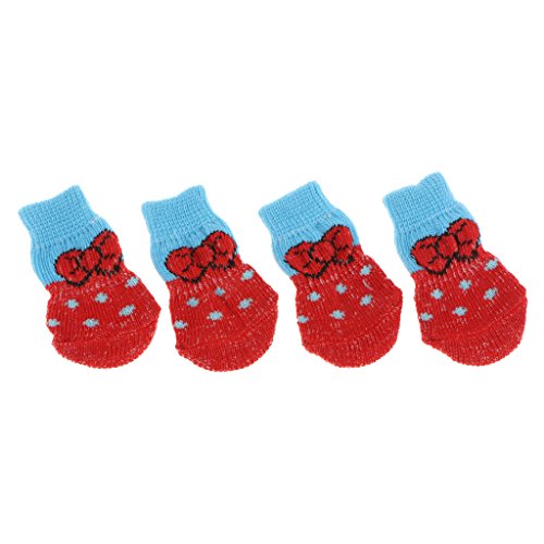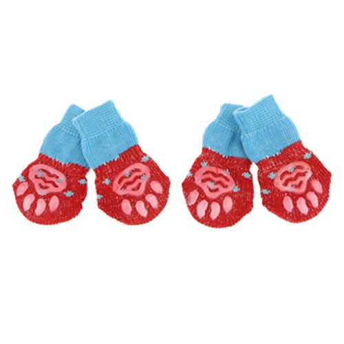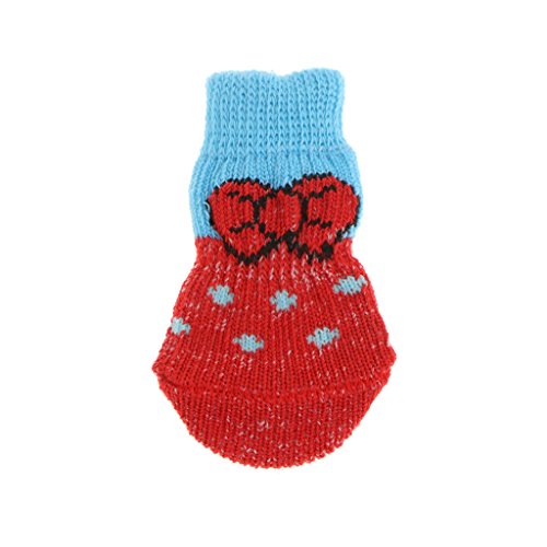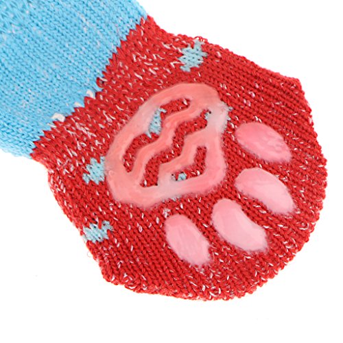 Description: - 4-Pack dog socks, heavy cotton made, keep your puppy dog warm and soft underfoot; - ANTI SKID for snowy days, with non-slip backing cover; - PROTECTOR SOCKS, it can keep your feet warm, especially when pet hurt, it can cover their wound and bandaged paws and helps it feel better; - Prevent your pet from scratching the wood floor and furnitures, and keep the paws always clean when it is playing round; - Elastic openning, easy to try on/off; Specification: - Material: Cotton