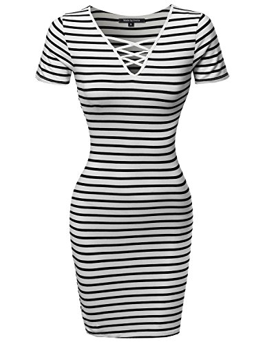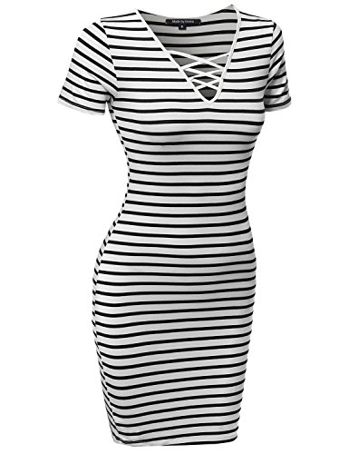 Stretchable / Soft jersey fabric / Stripe pattern / Hit above knee