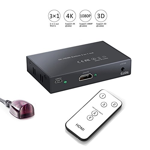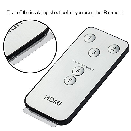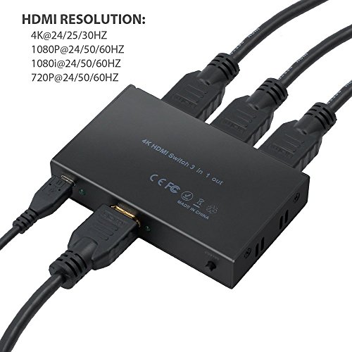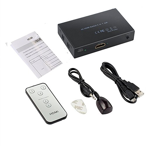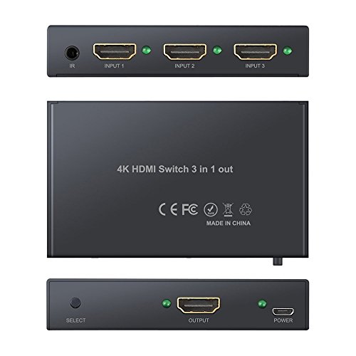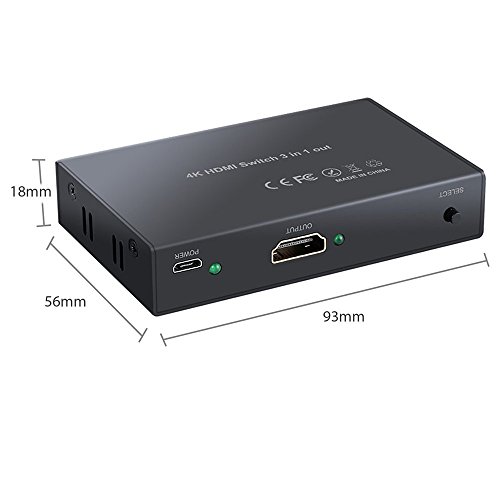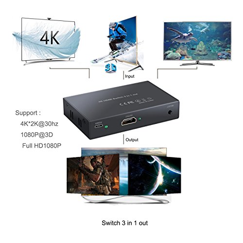 4K HDMI Switch 3X1 Port ROITB HDMI Switcher 3 In 1 Out adapter Supports Hub 4K×2K ,3D with IR Wireless Remote Control / Metal black Thin ( 96x53 x18 mm )
