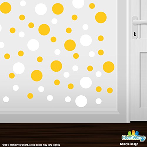 Set of 30 - Yellow / White Circles Polka Dots Vinyl Wall Graphic Decals Stickers