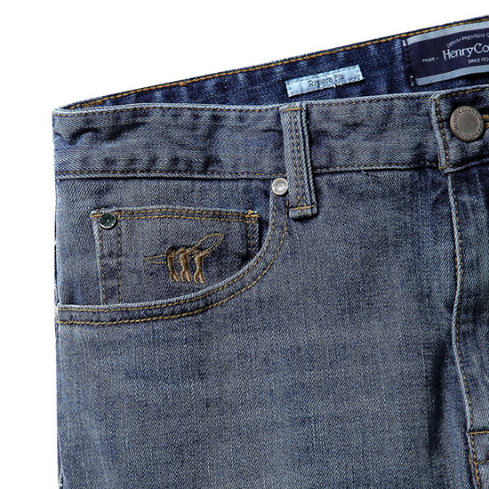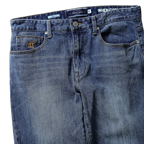 - 워싱 디자인의 캐주얼한 남성 데님 팬츠.