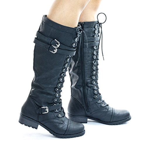 Binding : Apparel Product Description These military and equestrian riding boots inspired boots features a full frontal lace up closure with buckle for the eyelet, double belt on the upper shaft and single belt on the lower shaft, chunky block heel, lug sole and a full side zipper. The material has a vintage fade. About This Shoes :These military and equestrian riding boots inspired boots features a full frontal lace up closure with buckle for the eyelet, double belt on the upper shaft and single belt on the lower shaft, chunky block heel, lug sole and a full side zipper. The material has a vintage fade. Brand - Wild Diva Colors Available: Black, Brown Occasion: Casual Shoe Type: Combat Boots Shoe Style: Combat Boots Inner Lining: synthetic Heel Height In Inches - 1.25 Heel Style - Block Toe Style - round-toe Platform Height In Inches - Shaft Height In Inches - 14 Circumference Opening - 16 Strap Type - 0 Sole - 0 All Man Made Material unless otherwise stated. Computer/Phone/Table monitors might show color differently because of its quality or calibration, we suggest you look at the photo in at least 3 monitors if you need exact color match of your shoes. 0