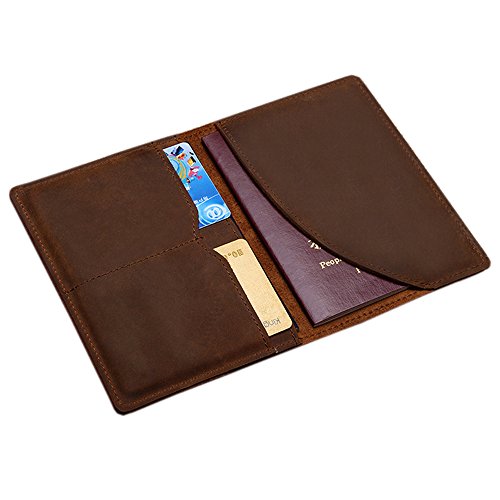 Product Description Features: - Boshiho Genuine Leather Passport Holder Wallet is made from crazy horse leather material, so it is a cool passport jacket to carry around and receive great positive comments. This is a great gift idea for all men and women in our lives. - Features one passport slot; one pocket for holding currency, notes, receipts; and 2 card slots for storing credit cards, ID's and key cards - Great for long or short trips, keep your passport, boarding pass, tickets, etc. all in one place! - The slim design is easily portable and ideal for slipping into a bag while you're on the go.
