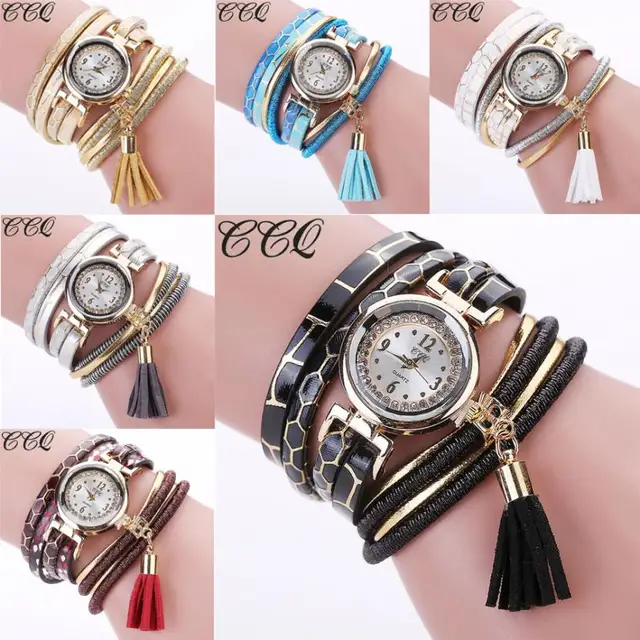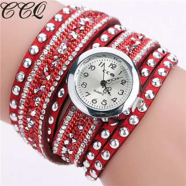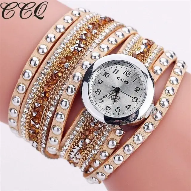2017 CCQ 여성 패션 캐주얼 아날로그 석영 여성 라인 석 시계 팔찌 시계