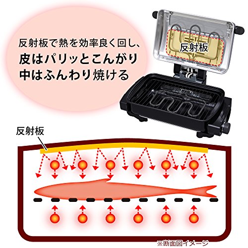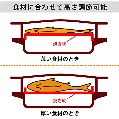 裏返し不要な両面焼きで、焼き網は2段階の高さ調節が可能です。