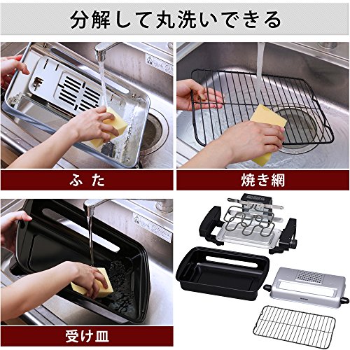蓋・受け皿・焼網を分解して、丸洗い出来ます。ヒーターの拭き掃除も可能です。