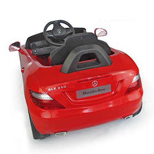 -. Binding : Toy -. Brand : Aosom -. Color : red -. Feature : Remote control and manual operation makes it suitable for a variety of ages / MP3 connectivity to rock out to your favorite tunes while driving / Key start, forward, stop and reverse gears for realistic and versatile operation / Adjustable seat belt for safe and comfortable use / Maximum weight capacity: 55.1 lbs./Overall dimensions: 43"L x 25.5"W x 19"H -. IsAdultProduct : 0 -. Label : Aosom -. Manufacturer : Aosom -. MPN : 301-014RD -. PackageQuantity : 1 -. PartNumber : 301-014RD -. ProductGroup : Toy -. ProductTypeName : TOYS_AND_GAMES -. Publisher : Aosom -. Studio : Aosom -. Title : Mercedes Benz SLK Class 6V Kids Electric Ride-On Car with MP3 and Remote Control - Red