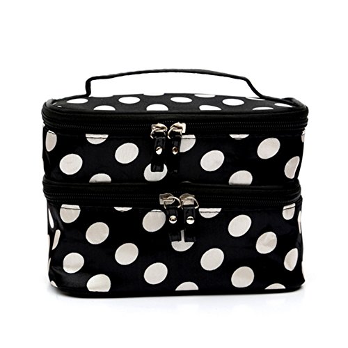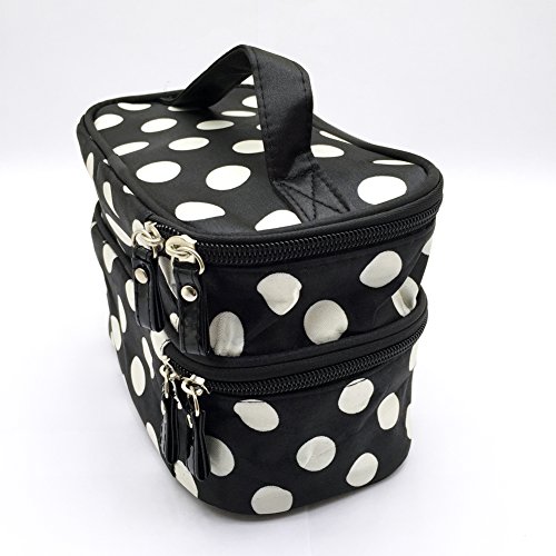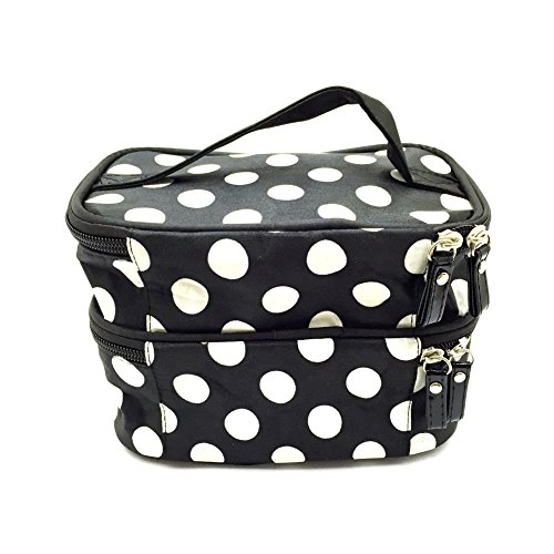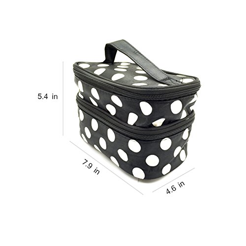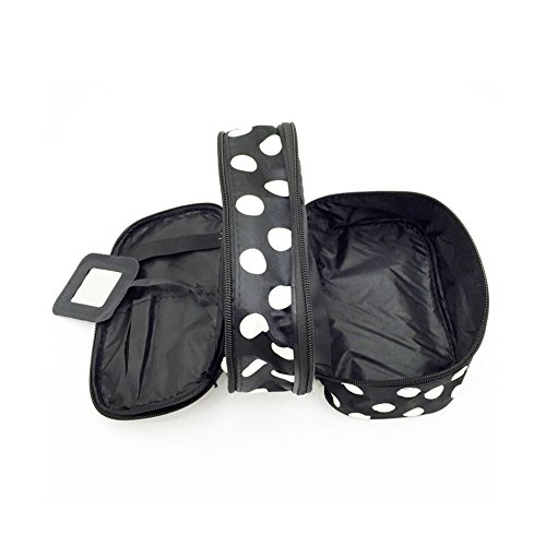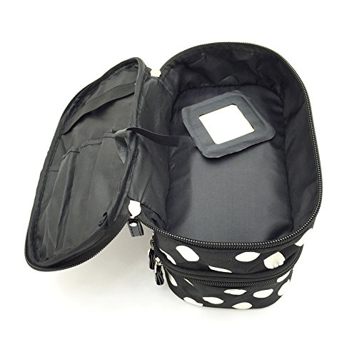 Jialeey Cosmetic Bag Double Layer Round Dot Travel Makeup Organizer Case Holder With Mirror Black