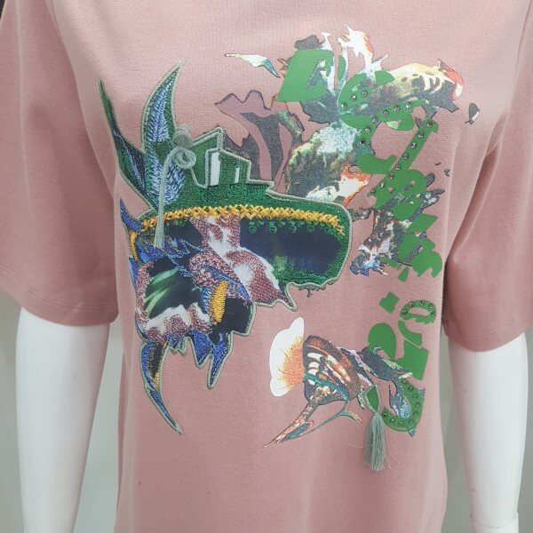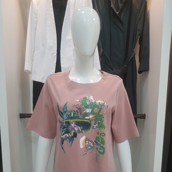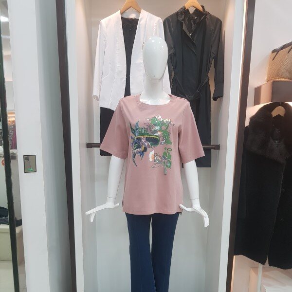 살짝 루즈한 핏에 자수가 섞인 화사한 프린트가 포인트인 티셔츠