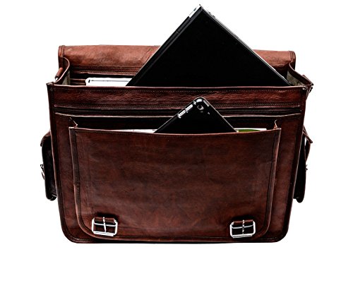 -. Feature : Imported / Size (WxHxD): approximately 15x11x4 in inches (perfect for documents, laptop / notebook, netbook or iPad) / inside 3 huge compartment with 2 zipper pocket, outer 1 big pocket in front 2 side pockets 1 on each side...!!! / Naturally treated, strong but supple goat leather and sturdy canvas lining on this inside. / This is perfect to use as a: messenger bag for men leather, messenger bag for women leather, messenger bag leather, leather golf bag, laptop bag leather, leather bags, leather camera bag, leather crossbody bag, leather computer bag, business leather bag, messenger bags leather, leather laptop bag for men