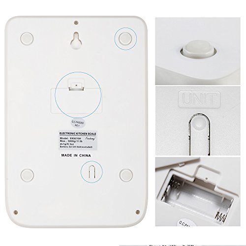 - 4 high precision sensors deliver accurate result. 1g / 0.1oz division, 5kg / 11lb. Could be used for cooking, baking, diet plan checking. Also could be used in office for postage.
