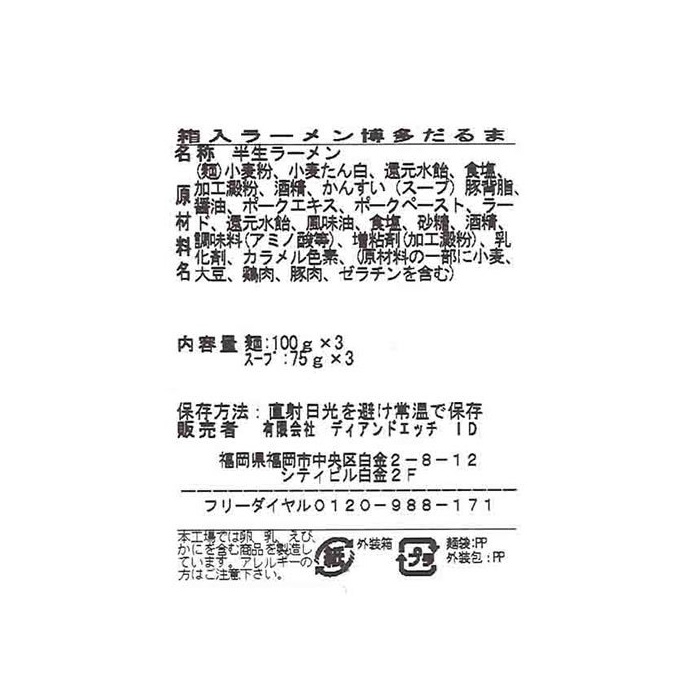 원본상품명: アイランド食品 箱入ラ?メン博多だるま 3食