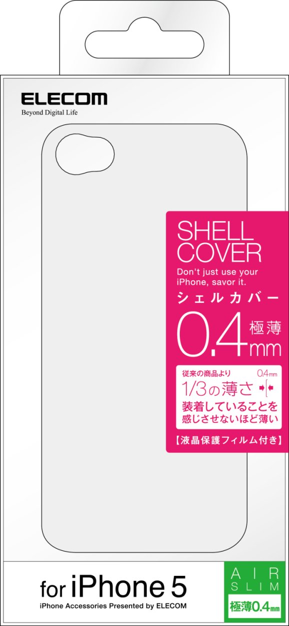 It is a thin type shell cover made of polypropylene and a protective film which are fitted perfectly to iPhone 5 to firmly protect from scratches and dirt.