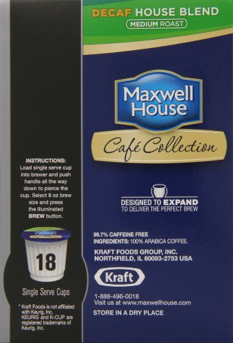 Maxwell House House Blend Decaf Coffee, Medium Roast, K-CUP Pods, 18 count (Pack Of 4)