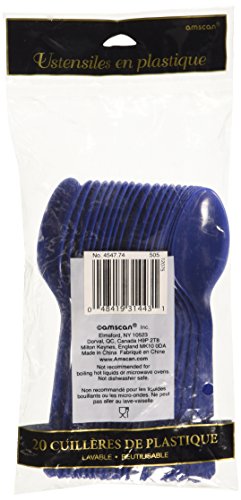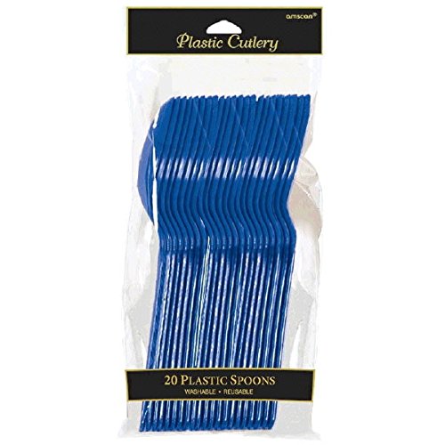 Amscan Party Perfect Reusable Plastic Spoons (20 Pack), Blue, 8.7 x 4.4"
