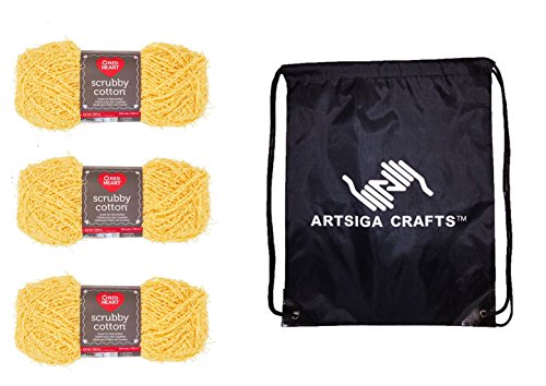 Bundle Includes 3-Pack of Red Heart Scrubby Cotton Yarn Lemony E854-7760 with 1 Artsiga Crafts Project Bag