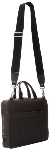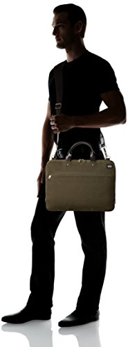 -. Feature : Distressed canvas briefcase in slim silhouette with floor-to-floor zipper opening, removable/adjustable webbing strap, and dual leather top handles