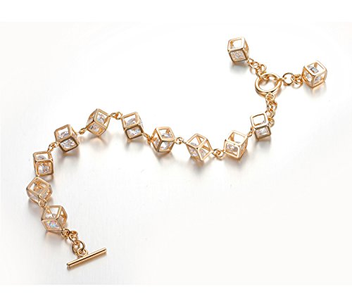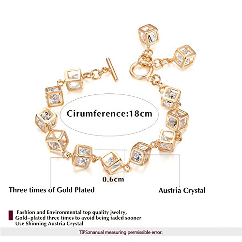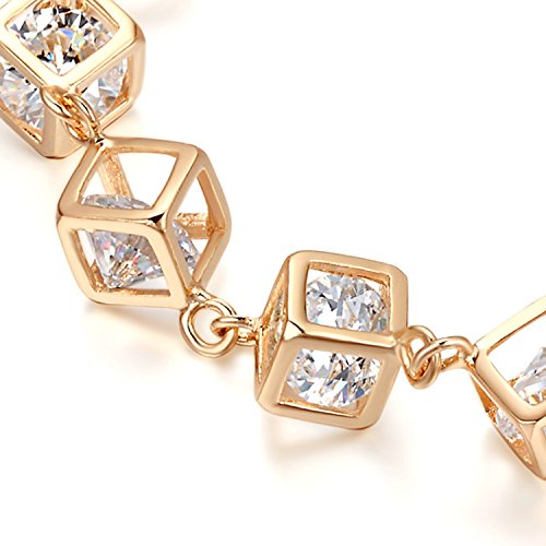 - Feature : The whole bracelet is composed of many small cubes and there is an Austrian crystal in each cube. / 18K rose gold plated, nickle free and tarnish free, comfort fit. / The Circumference is 7''. Every cube width is 0.2''. / Shipped out in an exquisite jewelry gift box. Delivery time 7-15 days. / One year warranty to ensure you a perfect shopping experience.