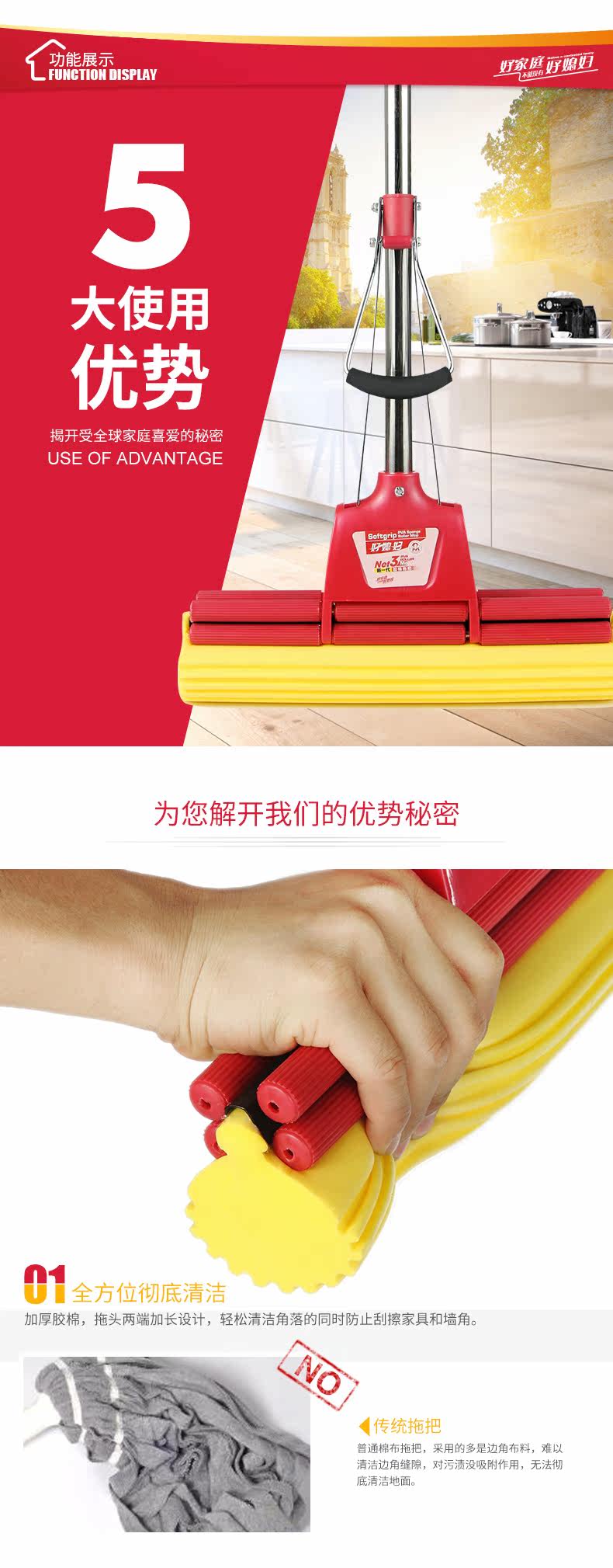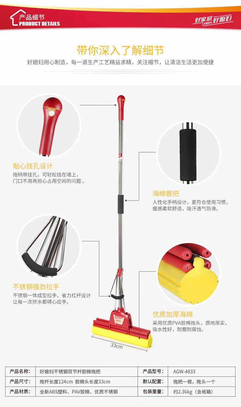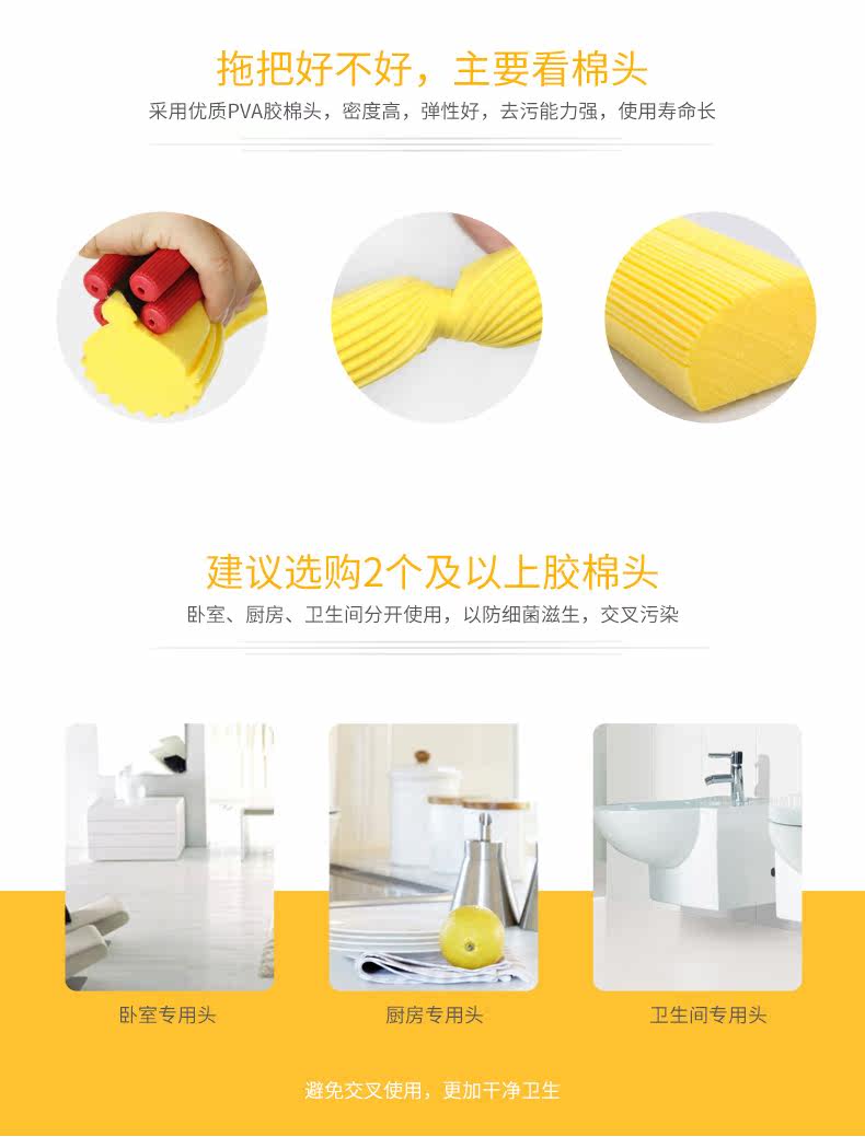 一直用的是好媳妇拖把,感觉比妙洁的好用,刚开始用吸水不太好,洗拖把拧出来的水是黄色的,过一段时间就好了。 12.12 | 颜色分类:共3个头 | |