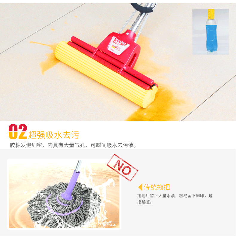 清洁效果好,能有效附着污物,清洗也方便,水一冲就干净。水挤压较好,拖地后没有明显水渍。快递神速,今年双十一买的东西第一个到货。客服响应快,及时补发漏件。拖头较38厘米的小,效率略低但托椅子下面不会刮搽椅子角。有个缺点就是不能调节拖把长短。总之这个价位性价比很好,好用。 11.27 | 颜色分类:共2个头 | |