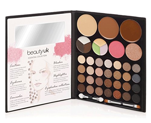 Beauty UK Essential Collection ALL-IN-ONE Professional Makeup Kit: Eyeshadows, Blush, Contouring Creams, Eyebrow kit, Concealer kit for a Natural or Smokey Makeup. Luxury Velvet Package
