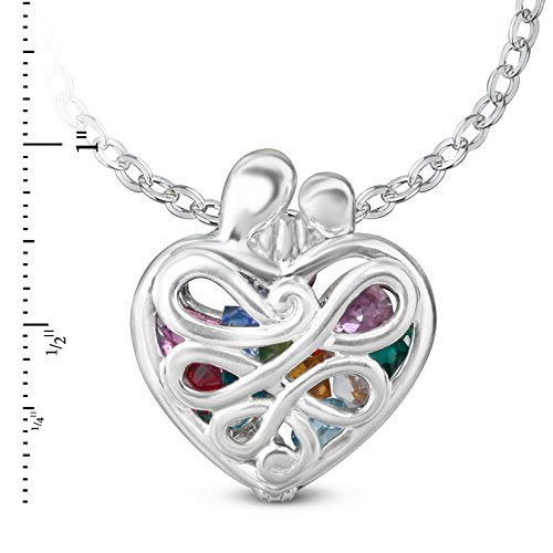 This touching heart-shaped locket features a loving mother-figure and child at the clasp area to serve as a reminder of those held closest to the heart. The filigree detailing on the locket allows the included Swarovski crystal birthstones to shine through. Lovely locket comes with 12 birthstones - one fore each month, however can hold up to 15 birthstones, far more than the average mother's locket.Feature