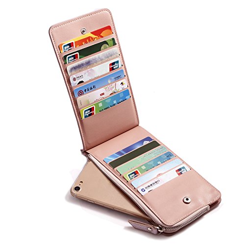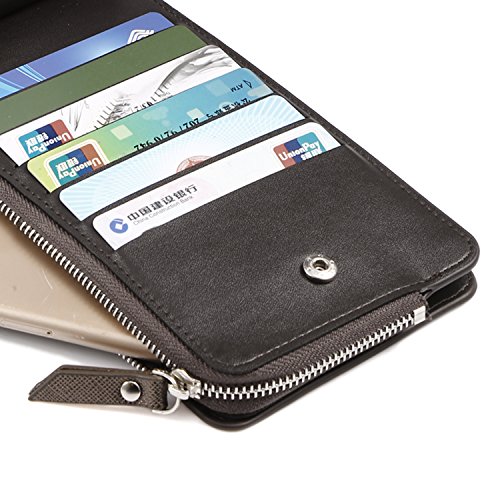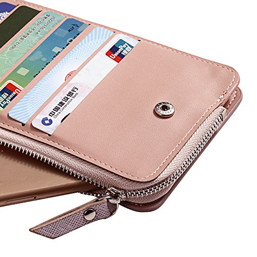 -. Feature : Made of high quality synthetic leather, it is durable enough to resist wear and tear from riding around in a handbag or pants pocket. / This is a powerful Card Case Wallets, with 26 Card slots, 1 zipper bag can put a mobile phone and paper money. / Clear layout and bi-fold design is made for you to keep your things oraganized well and easy to use. A good organizer to keep your money, cards, coins and passport, check book. / Ultra-thin design, hand-made craft with 7 colors: Rose Red, Red, Pastel Pink, Purple, Dark Blue, Coffee, Black, bright colors to meet your demand and taste. / DIMENSIONS: 7.5"L x 3.9"W x 0.6"H. ( Fit up to IPHONE6/iPhone 7 Plus 5.5 / Samsung Galaxy S6 and other cellphones.) It's comfortable size to hold it on hand, or put it in your handbag, backpack, or pocket.