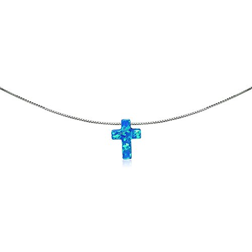 This beautiful choker features a created white opal cross. The necklace is crafted of fine sterling silver and is secured by a spring ring clasp. The necklace includes a 13" box chain plus a 3" extender. It can be purchased as necklaces for women, necklaces for teen girls, chokers for women and chokers for teen girls.