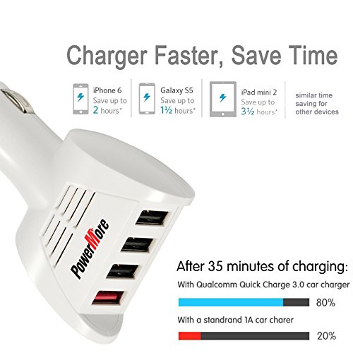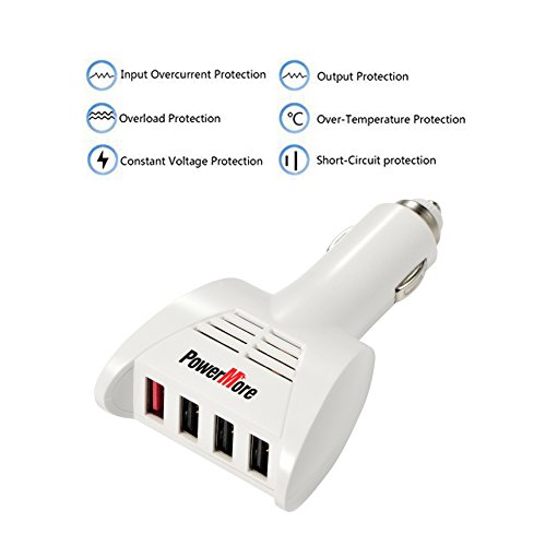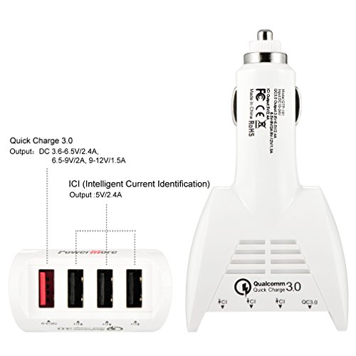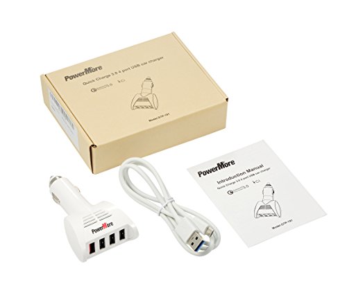 Quick Car Charger QC3.0 40W PowerMore 4 USB Port Fast Charge [QC2.0 Compatible]For Note5, S6 S7 Edge,iPhone, iPad, LG G4 [1M Low Resistance Micro B Cable]