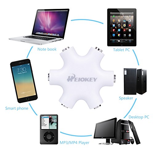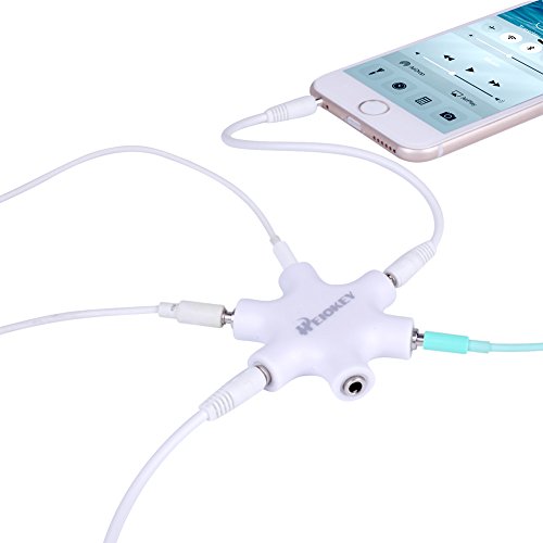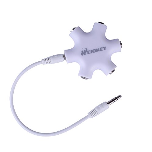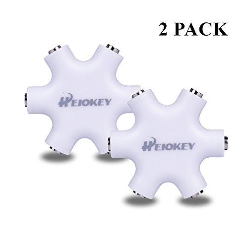 HEIOKEY 3.5mm 1 to 5 Stereo Audio Headphone Headset Earphone Splitter Adapter Converter Connector Music Sharing Device for Mobile Phones iPod iPad MP3/MP4 Tablets 2 pack-White