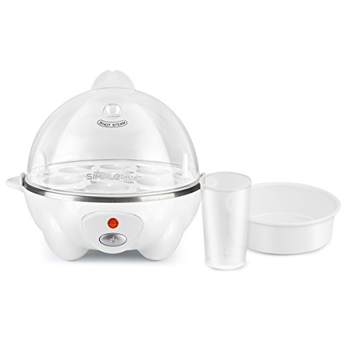 With SimpleTaste Egg Cooker, make fresh and nutritious steam-boiled eggs in minutes, with no preparation or clean up required. Simply add water, put eggs on the convenient egg holder, and turn on.