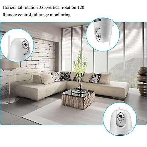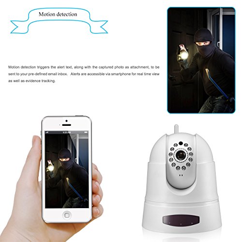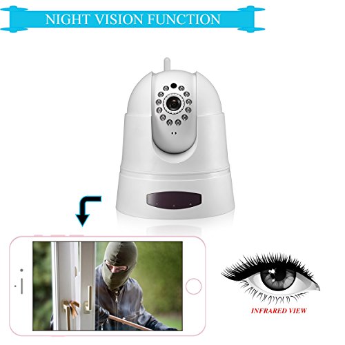 Wifi Wireless IP Camera Home Security Cameras Network Video Monitor 720P Stunning HD Video Quality, 1280 x 720p 25 fps Face to Face effect, 1.0 megapixel lens capable of streaming video, 350 x 95 degree covers every corner of your home, 12 IR LEDs for Night Vision up to 10 Meters.