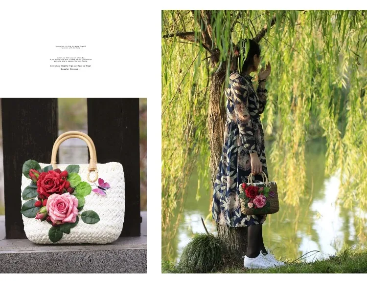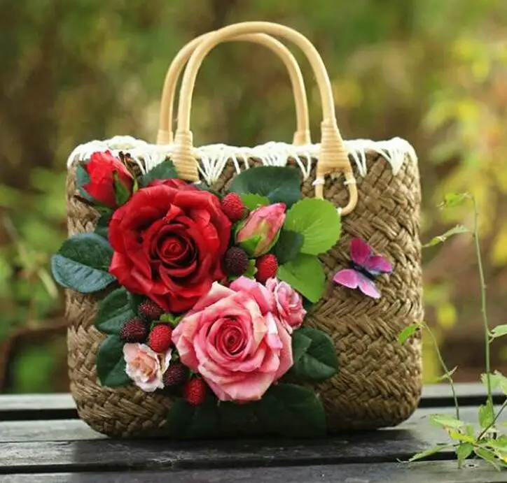style 8:summer straw bags/flower straw bag summer beach bag