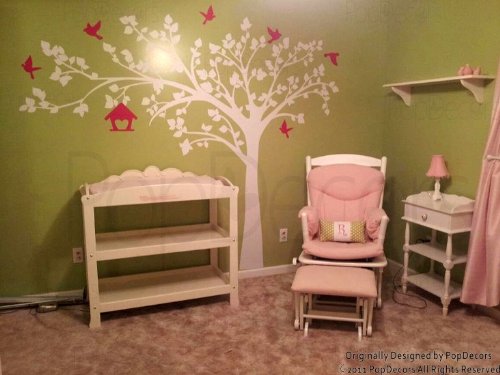 If you have been bored of painting walls, using stencils and putting up wallpapers, use this gorgeous wall decals and stickers for decoration. It will make your room shine without damaging your walls or the bank. [size] tree: 100"(255cm)W 79"(200cm)H. You can position birds freely. Default colors: (as shown in the first image) tree: white, bird house and birds: lime tree green. In the decal package, you will get your decal, step by step instruction, installation tool and free sample decal for practice. Product can be applied on any smooth and clean surface (walls, glass, doors etc). Textured walls (orange, sandy and grainy), low voc paint and fresh paint (less than 14 days) are not suitable for such products. Original designs by popdecors. 2010 copyrights protected.Feature