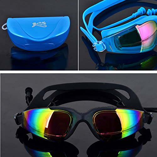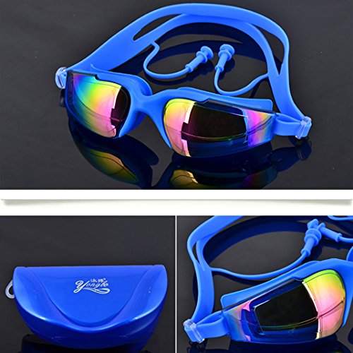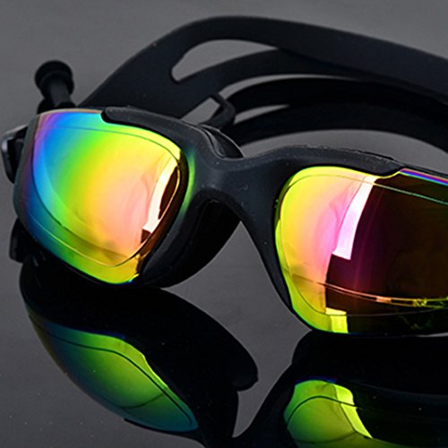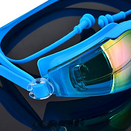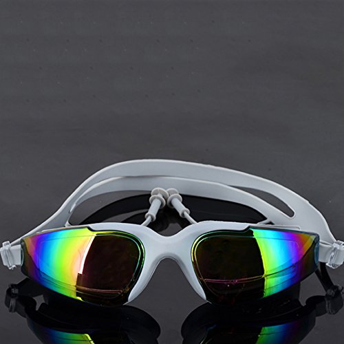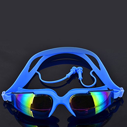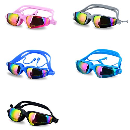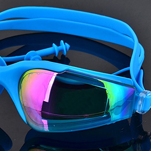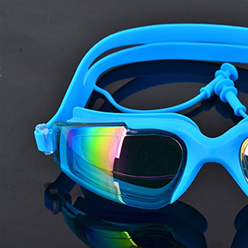 -. Feature : COMFORTABLE SOFT SILICONE SEALS - Flexible silicone frame and gasket provides maximum comfort and goggle's larger clear lens and quality sealing surface makes you feel comfortable. Designed specifically for adult unisex, Not fit for children. / ERGONOMIC DESIGN - The earplugs are attached to protect swimmers' ears, a fixed design,and you will never lose them. Ergonomic completely sealed silicone protective circle design prevent water from entering your goggles ,and help to reduce the pressure around the eyes, keep your eyes dry and comfortable. / STRAP ADJUSTMENT - The headband is made of soft and elastic silicone,comfortable to wear,as well as prevent eyeglass slipping during swimming. Adjustable headband offers different size options to Fit Any Size. Very easy and handy to use to adjust the strap. It's also adjustable at different angles to fit your head size. / ANTI-SHATTER, ANTI-FOG, AND ANTI-UV - Swimming goggles using high quality imported Polycarbonate and silicone materials and imported UV stable materials. Mirrored and anti-fog lenses filters out powerful rays of light to enhance sight clarity, uv protection makes it nice in the bright sun outdoors. Ideal for use in outdoor swimming or competitions. / SUPERB COMFORT - Soft and flexible design means you get the best fit with these swimming goggles for adults, men and women. No need to over-tighten and won't leave marks after your swim! These are the good swim goggles for fit and comfort.