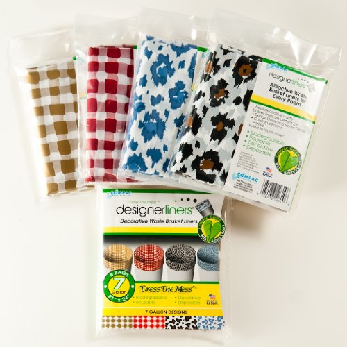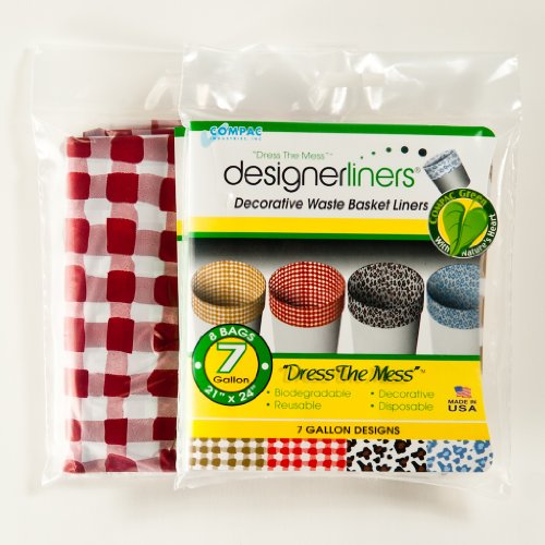 Compac Designerliner 8ct Biodegradable Waste Basket Trash Bags 7 Gallon (RED GINGHAM)