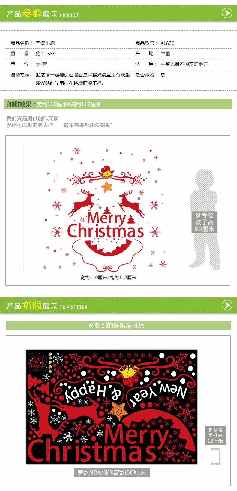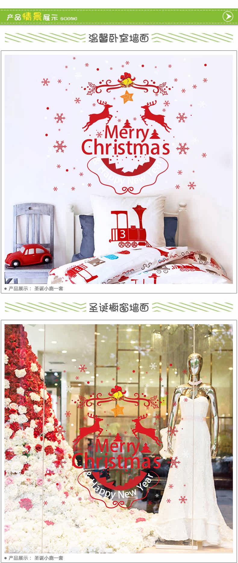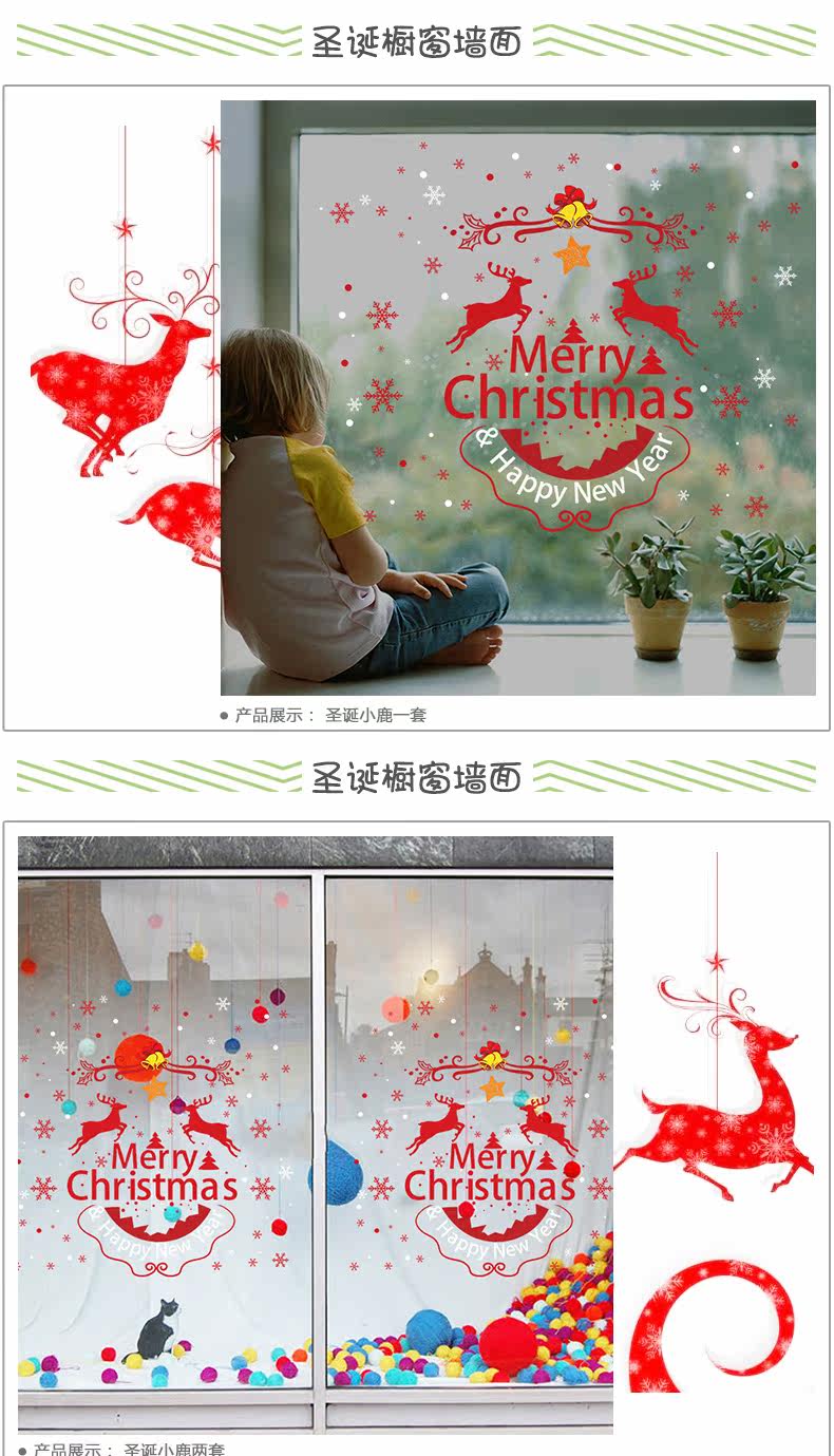 圣诞节布置装饰商场店铺公司橱窗玻璃贴纸墙贴画自粘推拉门贴窗花