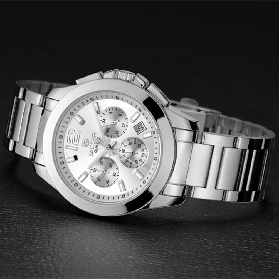 MEGIR Women Casual Quartz Watch Chronograph & 24 Hours Function Engraved Dial Watches Women Jewelry relogios feminino MG5006