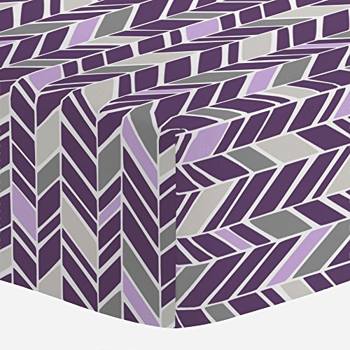 -. Title : Carousel Designs Aubergine and Cloud Gray Herringbone Crib Sheet - Organic 100% Cotton Fitted Crib Sheet - Made in the USA