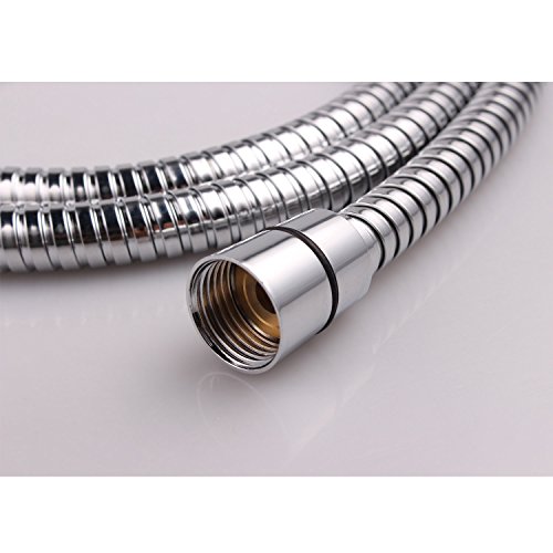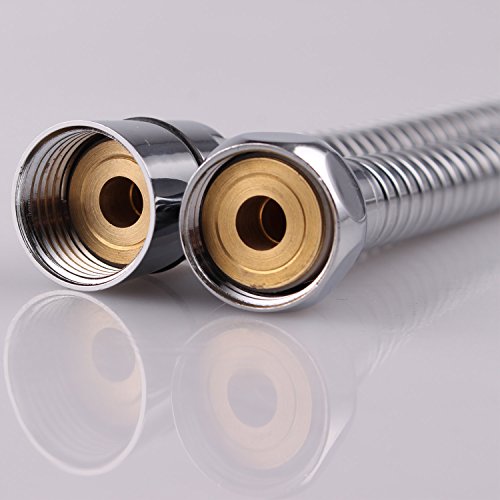 VANRA Stainless Steel Shower Hose Extension Flexible Pipe Handheld Stretchable Shower Tube Hosepipe with Double Interlock, Brass Fittings, Polished Chrome - 59 Inches (1.5 Meters)